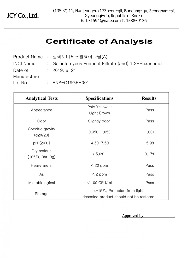 | INCI | Galactomyces Ferment Filtrarte 100% | ||||||||||