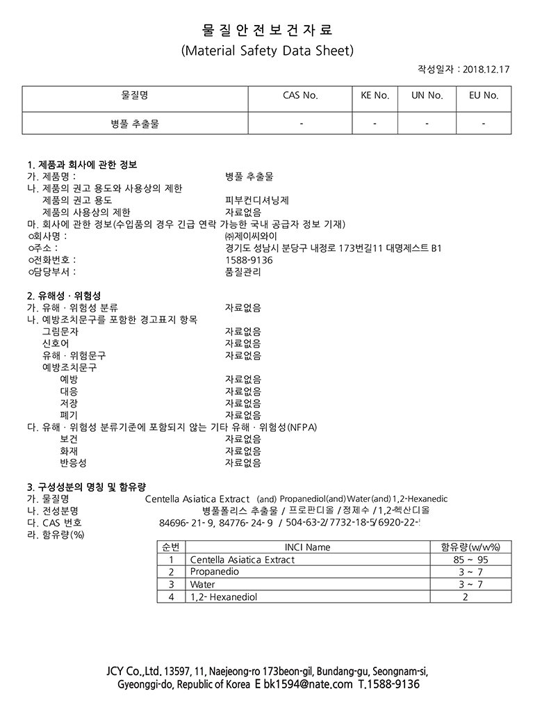 병풀추출물은 천연물질로서 스킨, 로션 , 크림 등을 만들 때 첨가하여 사용할 수 있는 추출물입니다.