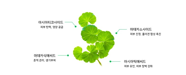 병풀에는 마데카식산이란 성분이 포함되어 있는데, 이는 현대의학애서 피부자생효과로 각광받고있는 성분으로서