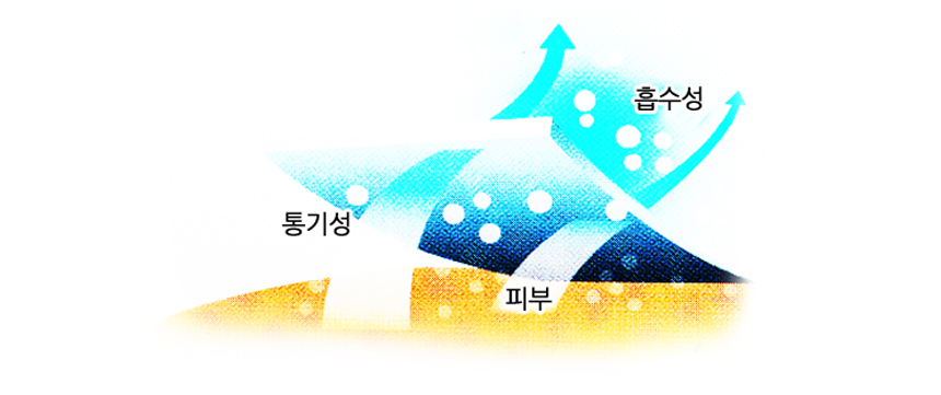 수분의 흡수 및 발수가 빨라 몸에 잘 달라 붙지 않습니다.