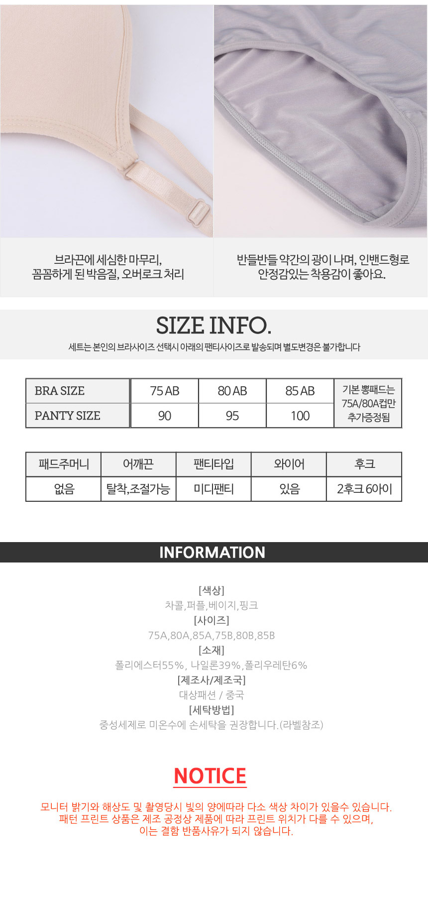 세트상품이기때문에 정해진 팬티사이즈대로 출고되며, 따로 선택하실수가 없습니다.