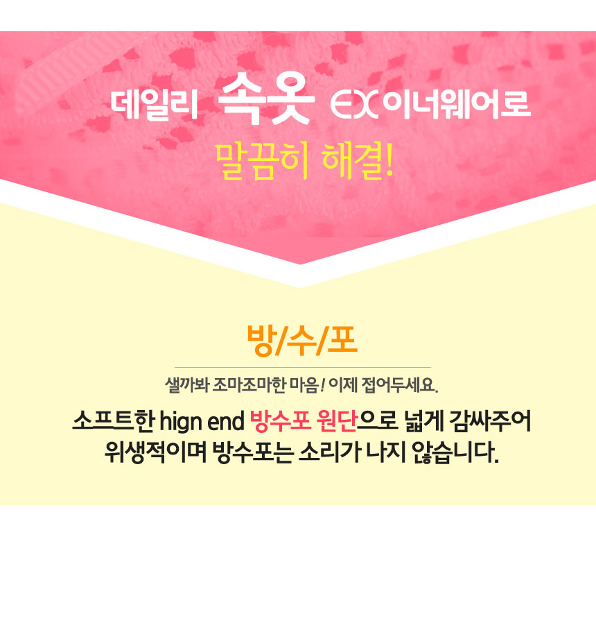 민감한날 입는 것이니까 더욱 편하도록 신축성 있는 소재로 제작하여 안심하고 입을 수 있어요.