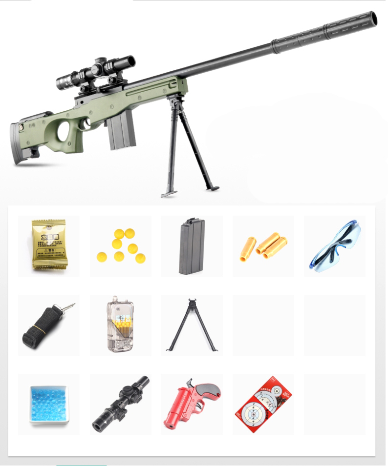 - 8배율 스코프 및 1천여발 젤리탄(6~7mm) 등을 포함한 12가지 풀파츠 구성
