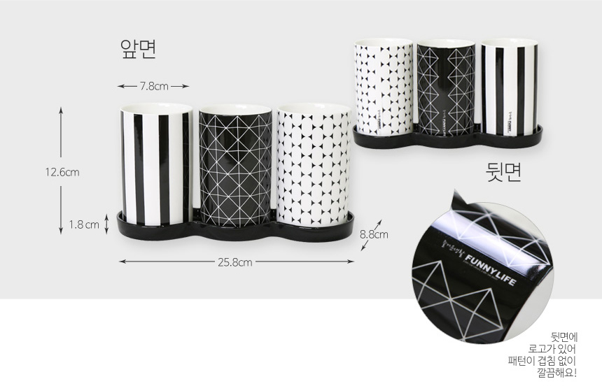 2. 모던라인 수저통은 전사지를 씌운 제품으로 전사의 위치가 ± 1~2mm 정도 차이 날 수 있습니다.
