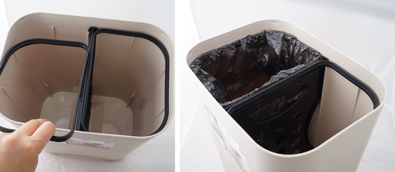 원터치 트윈 휴지통은 한 공간을 2개로 분리하여