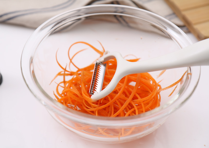 부드럽게 한번만 지나가면 간편하게 채썰기가 가능해요!