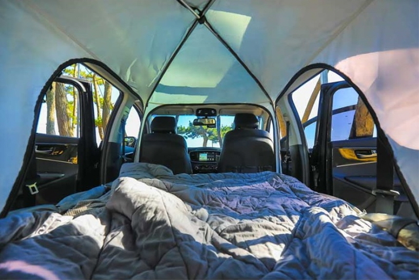 운전석과 조수석을 제외한 뒷쪽 모든 시트가 접어지는 구조가 아니면 텐트 설치가 불가합니다.