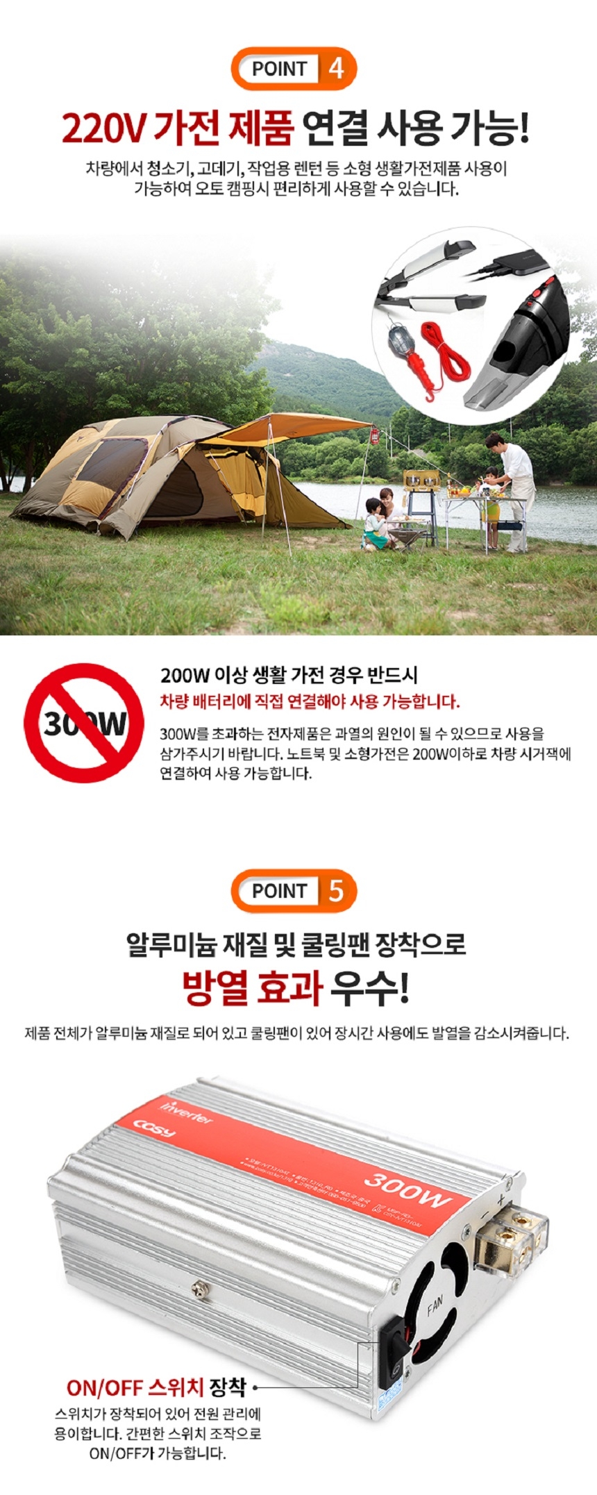 220V 가전 제품 연결 사용 가능