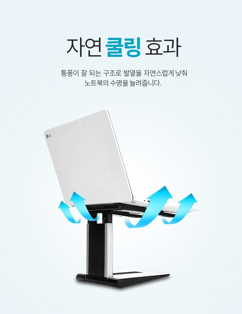 통풍이 잘 되는 구조로 발열을 자연스럽게 낮춰 노트북의 수명을 늘려 줍니다.