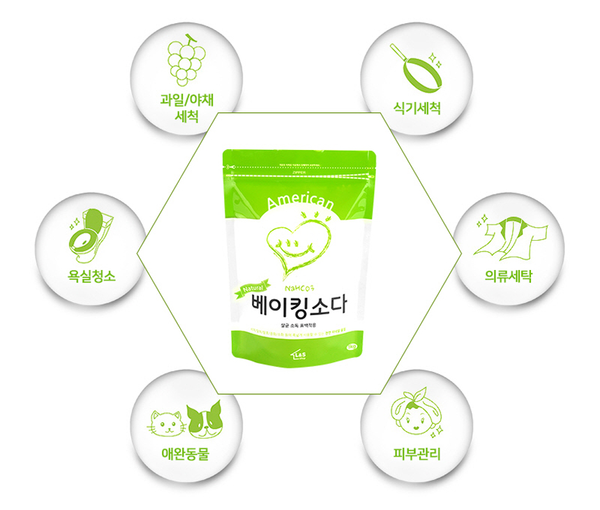 심한오염이나 기름때는 지방산이라는 산성물질로 되어있어 약알칼리성인 베이킹소다에 의해서 중화되어 수용성으로 성질이 변해 물걸레로 쉽게 닦을수 있습니다.