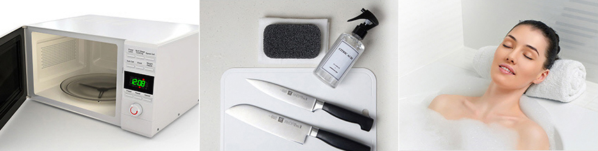 | 과일이나 채소 씻을때 | 전자레인지청소 | 욕실 물때 제거 |