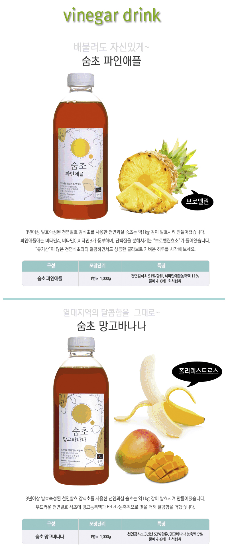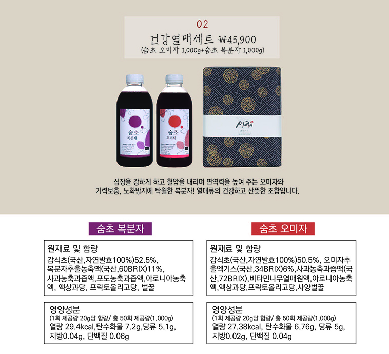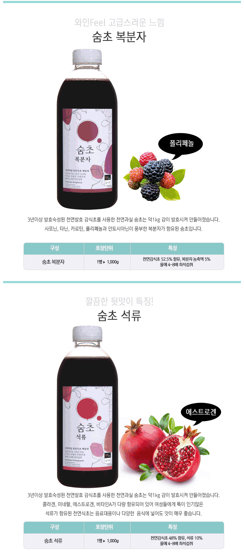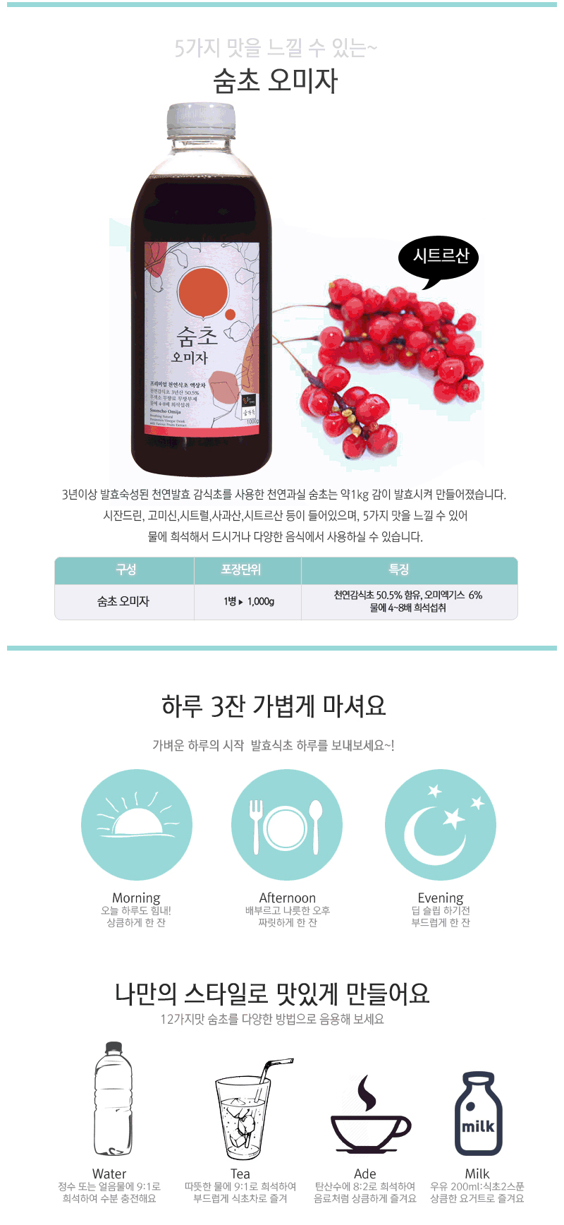 ·3년 이상 발효한 천연식초에 과일 농축액, 꿀 등 좋은 재료로 맛있게 즐길 수 있는 음료