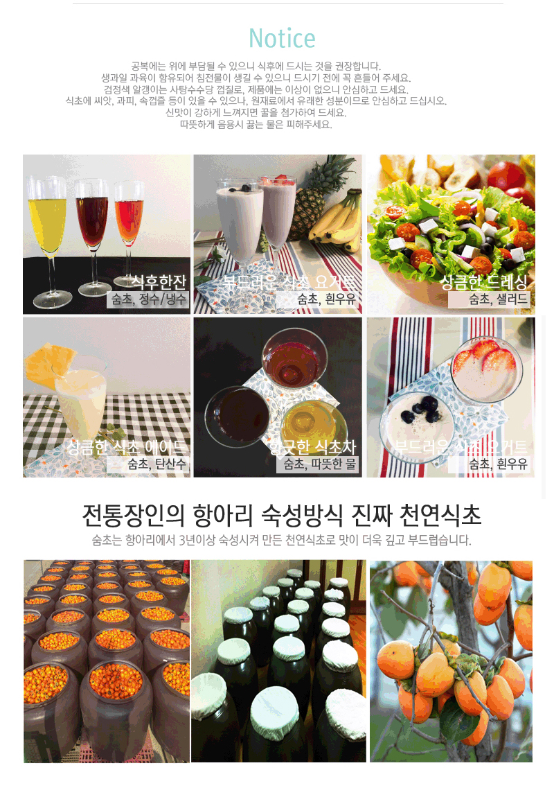 ·3년 이상 발효한 천연식초에 과일 농축액, 꿀 등 좋은 재료로 맛있게 즐길 수 있는 음료