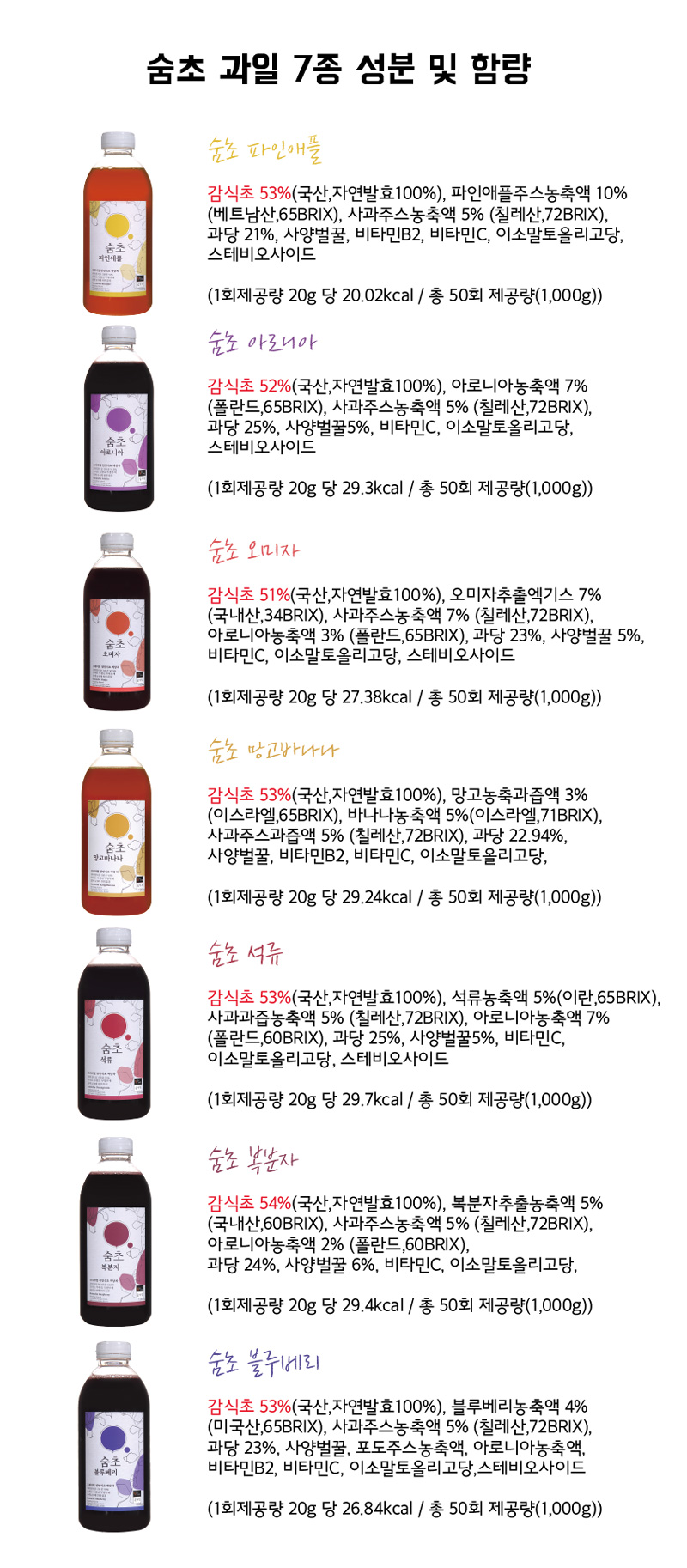 파인애플 / 망고바나나 / 아로니아 / 블루베리 / 석류 / 복분자 / 오미자