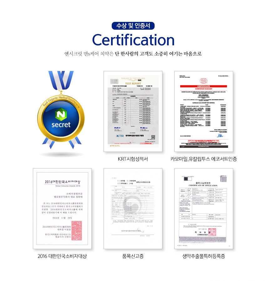 엔시크릿 치약은 유럽 유기농 인증 (ECO CERT) 원료를 사용합니다.