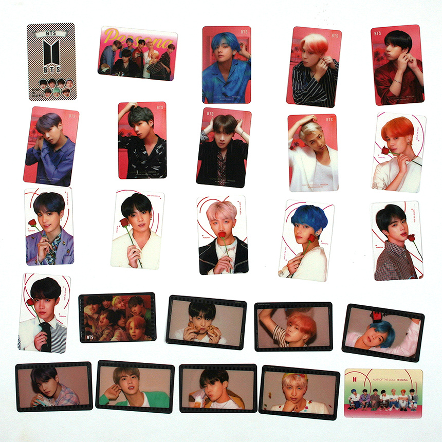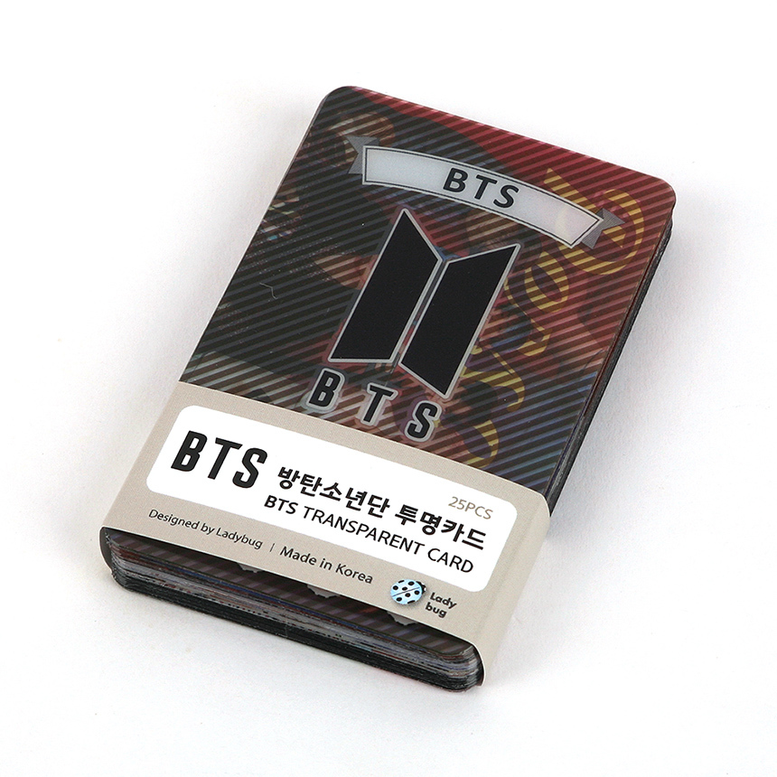 방탄소년단 BTS의 사진이 인쇄된 투명 포토카드 25장 세트입니다.