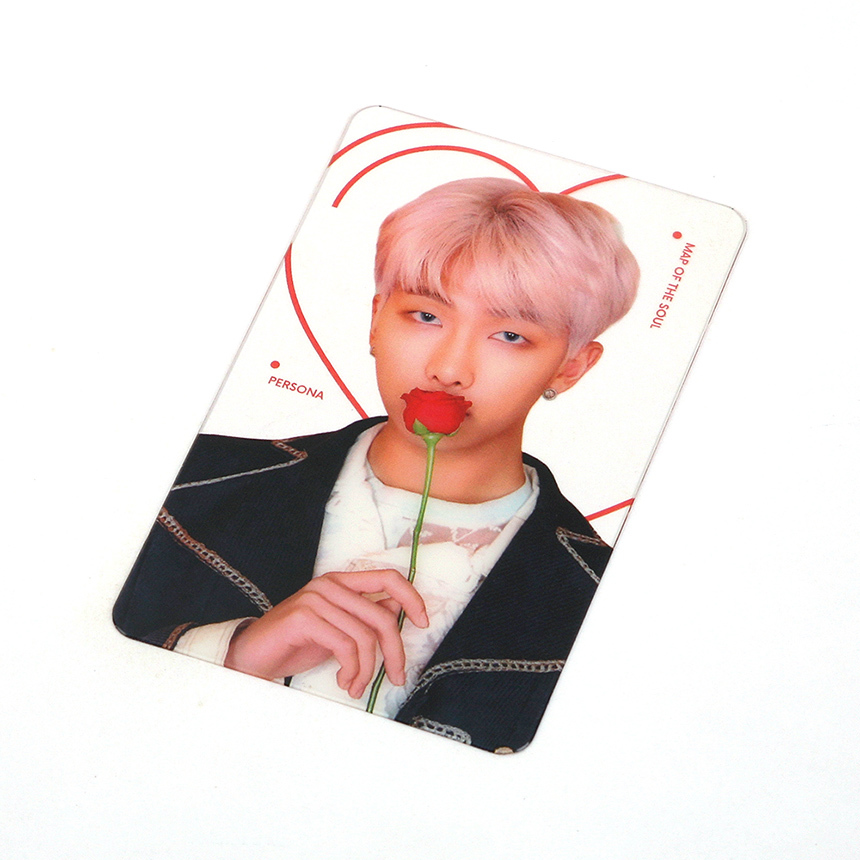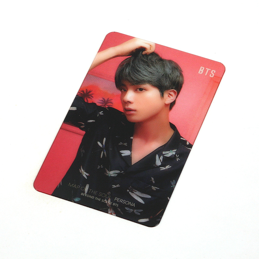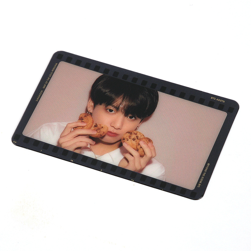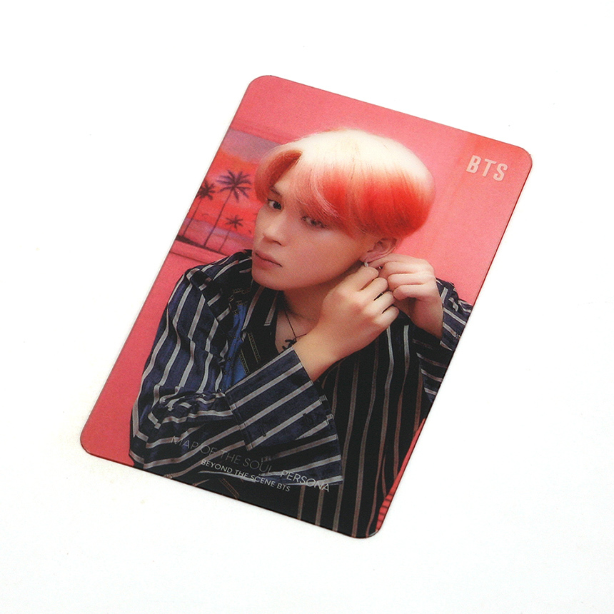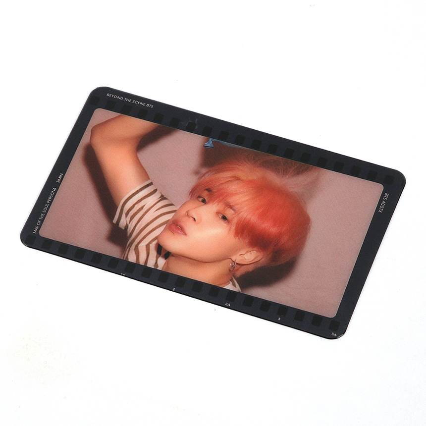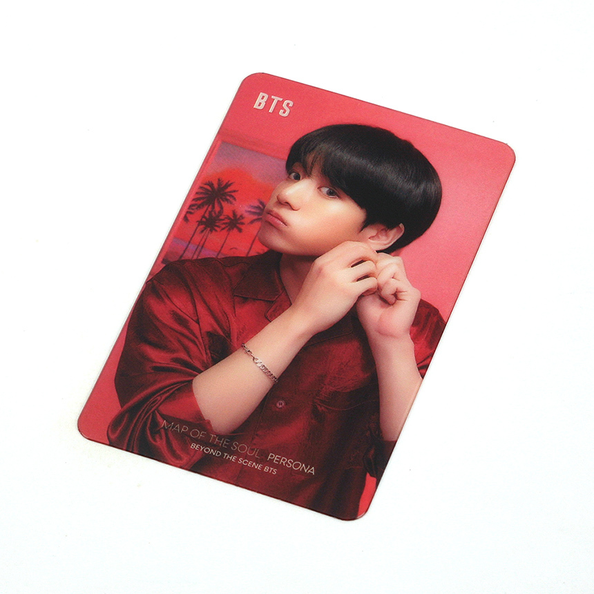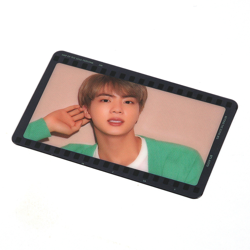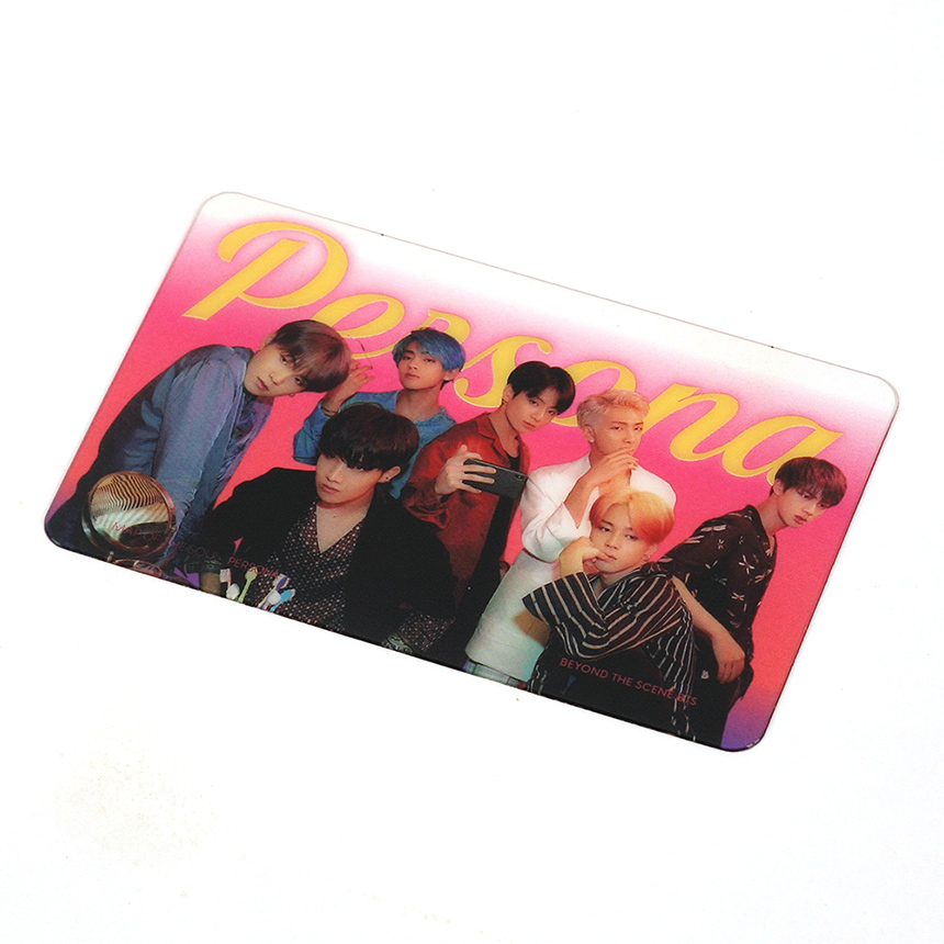 투명한 플라스틱 카드에 방탄소년단 BTS의 사진이 인쇄된 독특한 느낌의 투명 포토카드입니다.