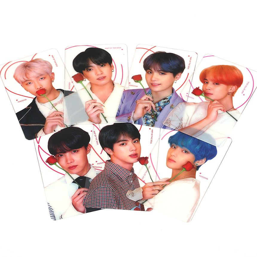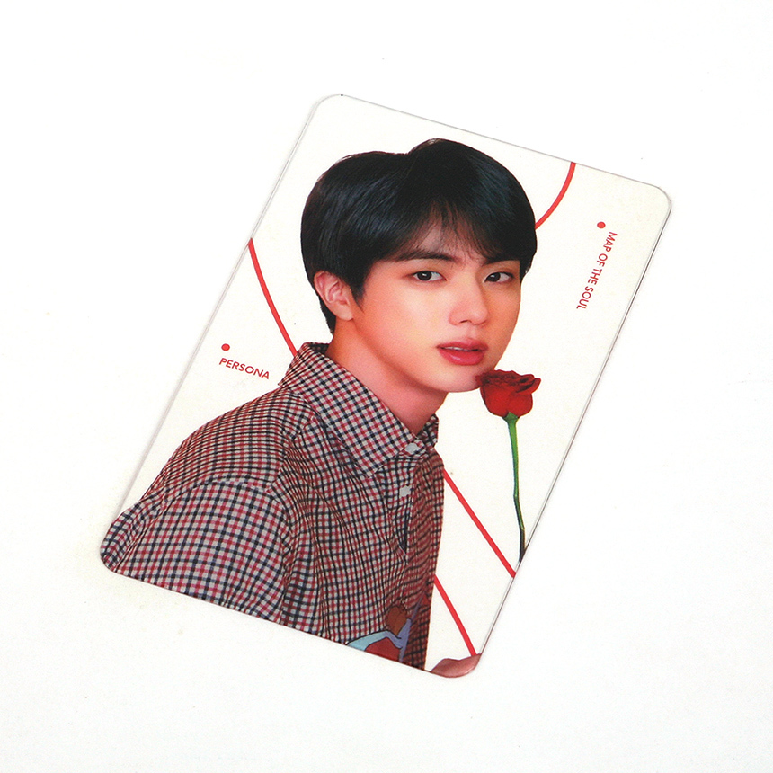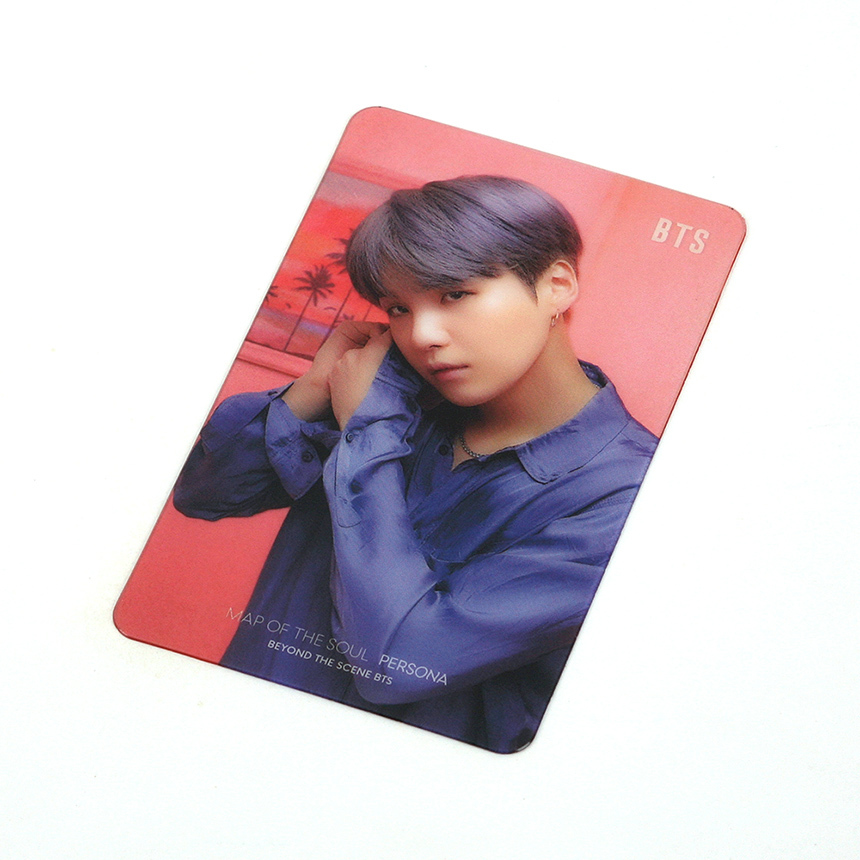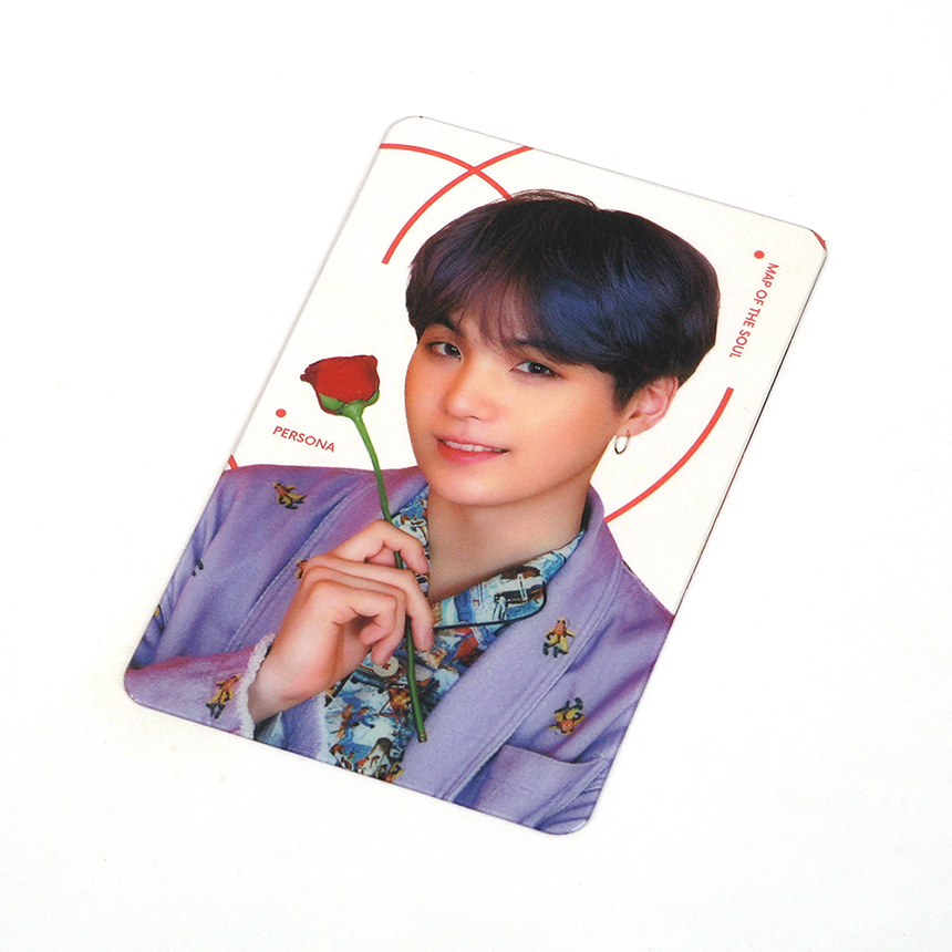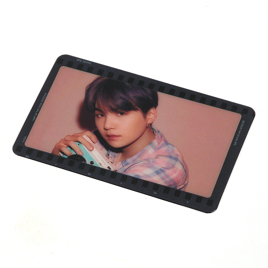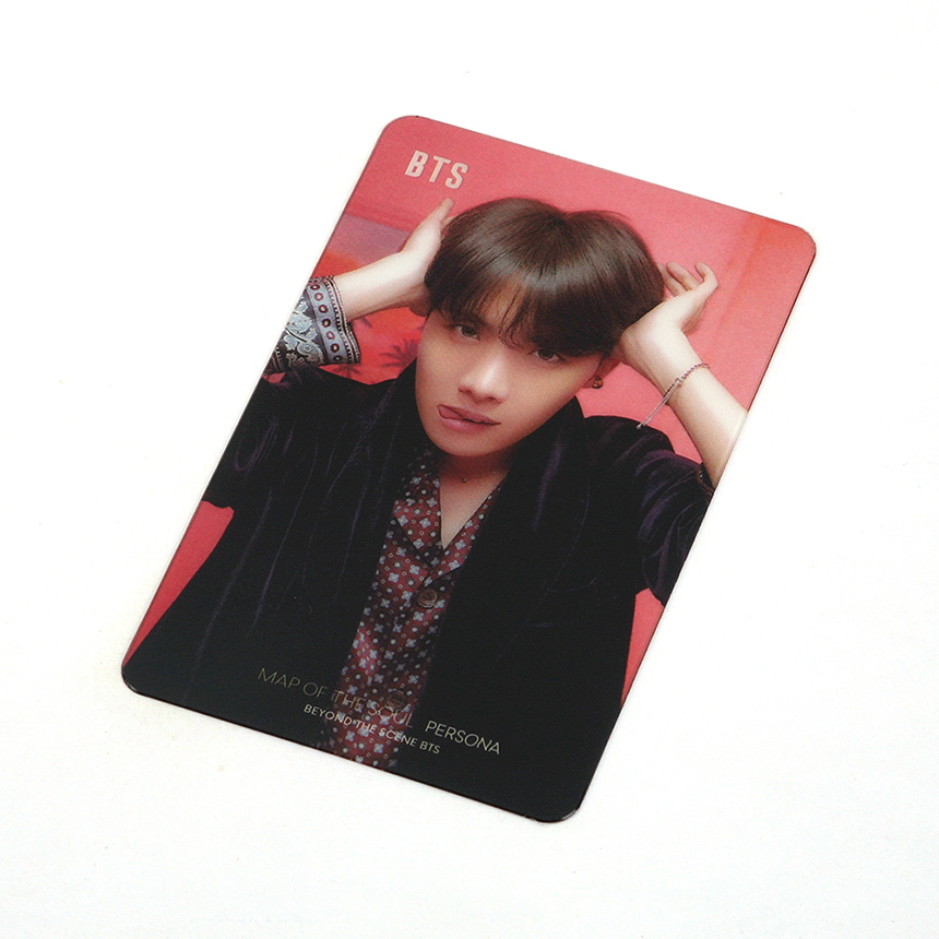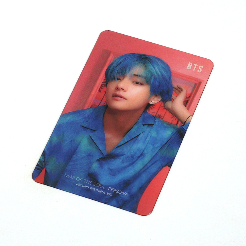 투명한 플라스틱 카드에 방탄소년단 BTS의 사진이 인쇄된 독특한 느낌의 투명 포토카드입니다.