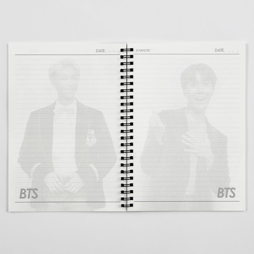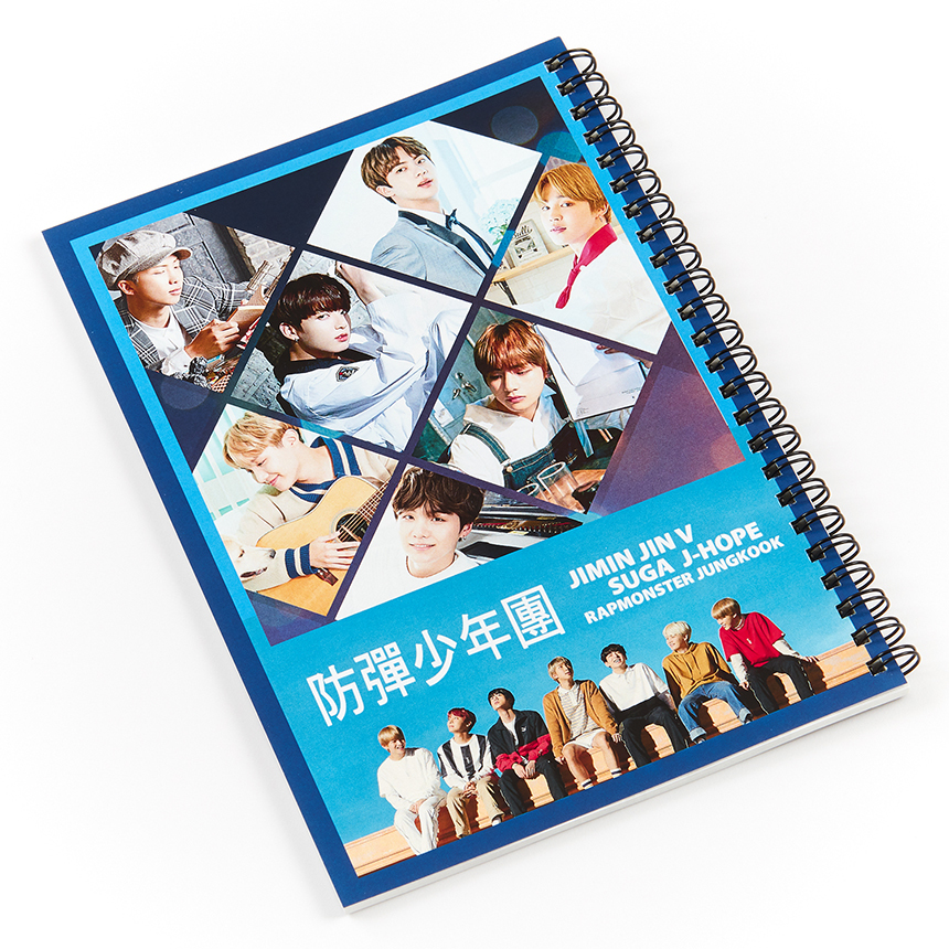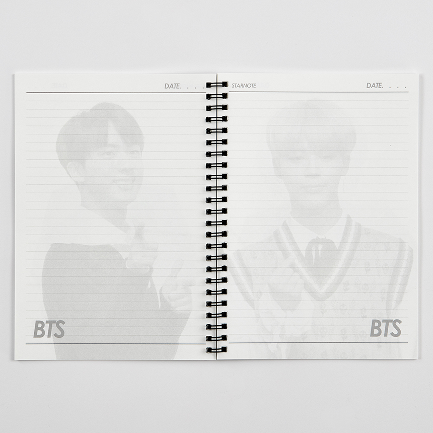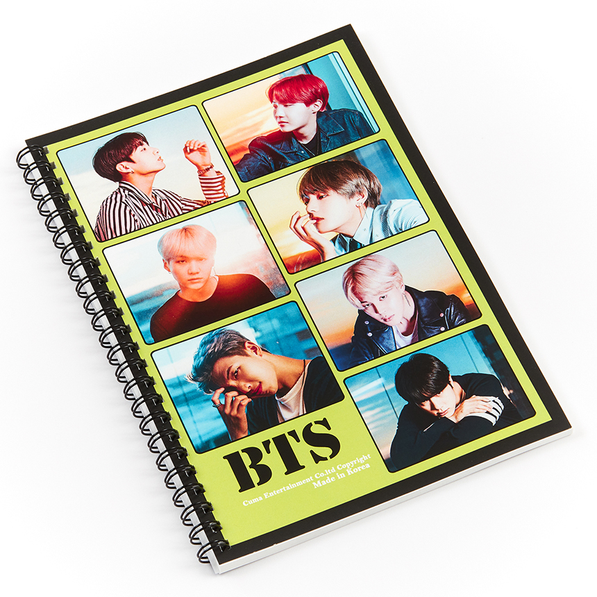 방탄소년단 BTS의 사진이 인쇄된 스프링 노트 줄 공책입니다.