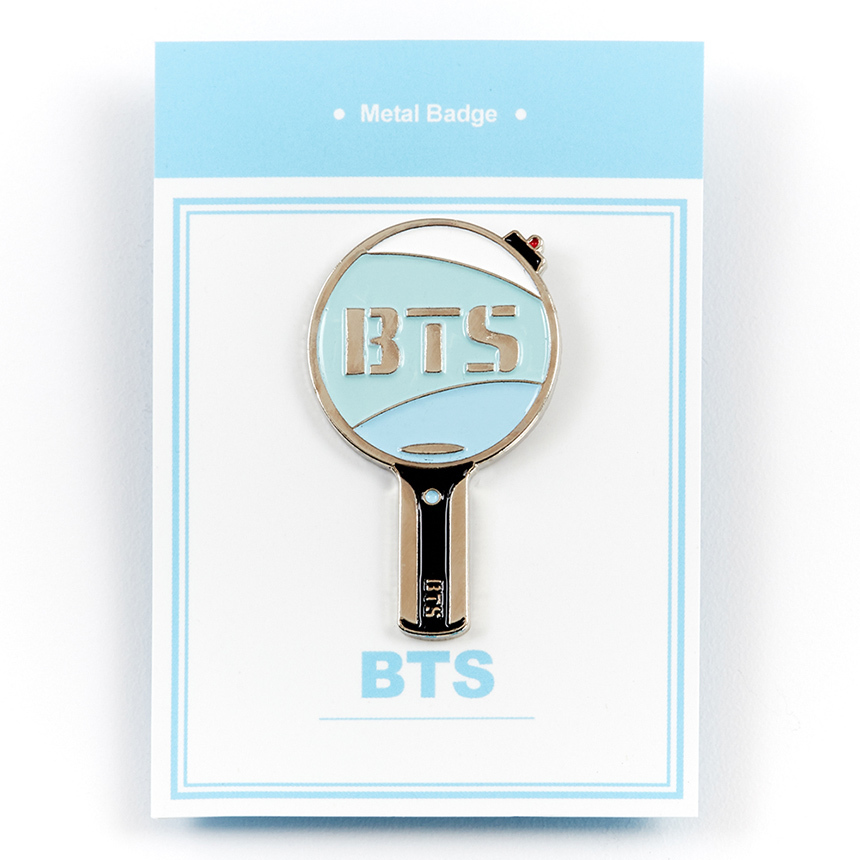 방탄소년단 BTS 로고가 새겨진 응원봉(아미밤) 메탈 뱃지입니다.