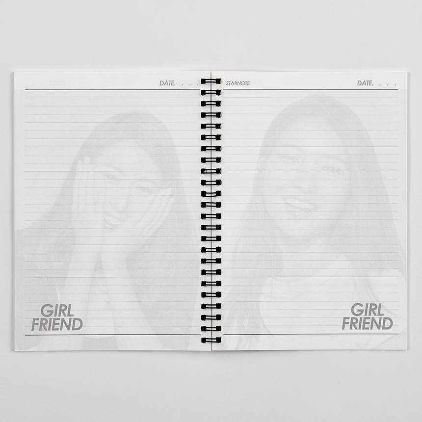 여자친구 GFRIEND의 사진이 인쇄된 스프링 노트 줄 공책입니다.