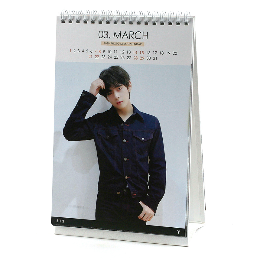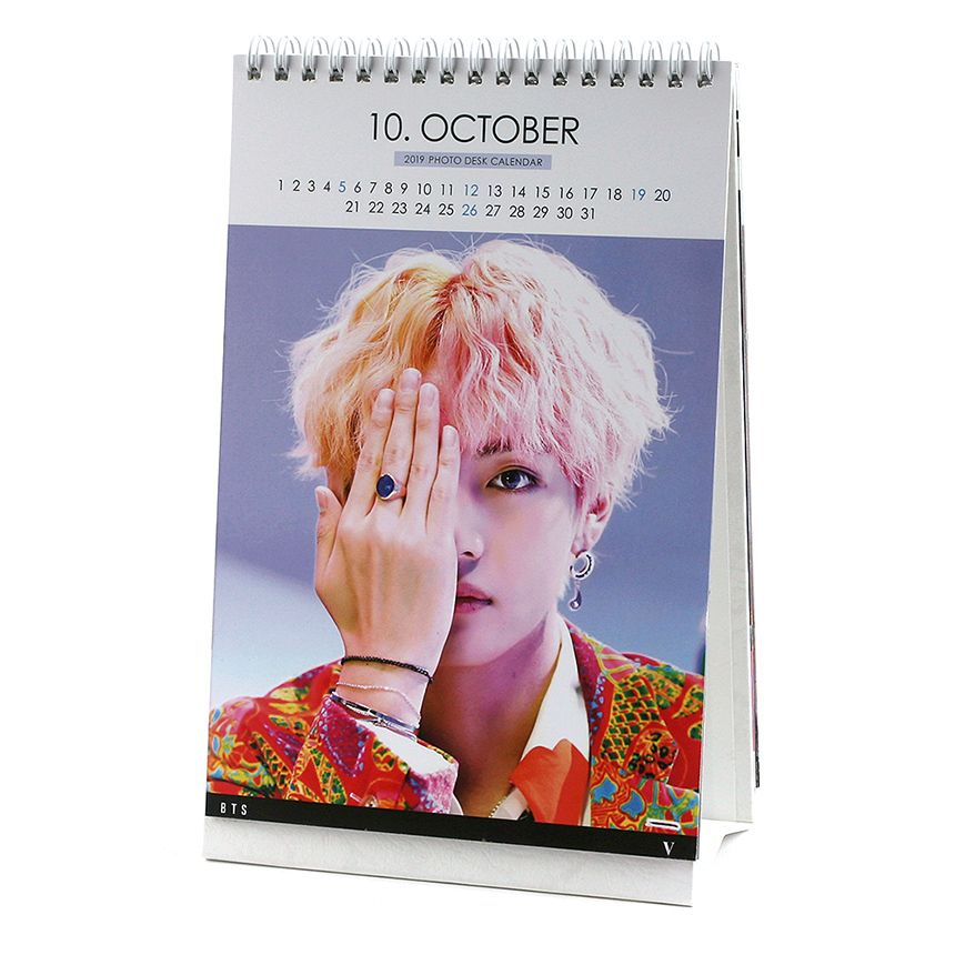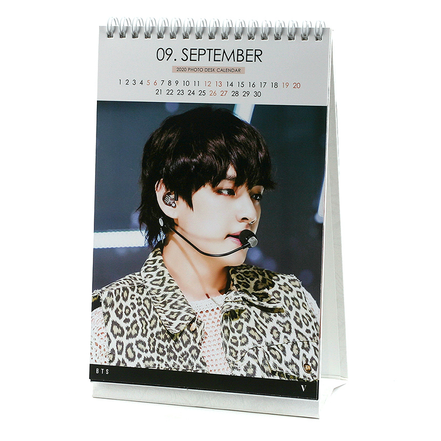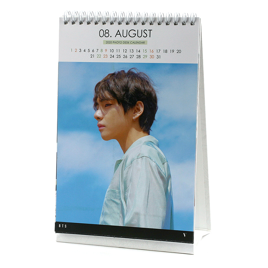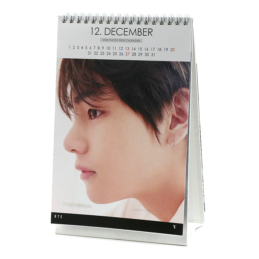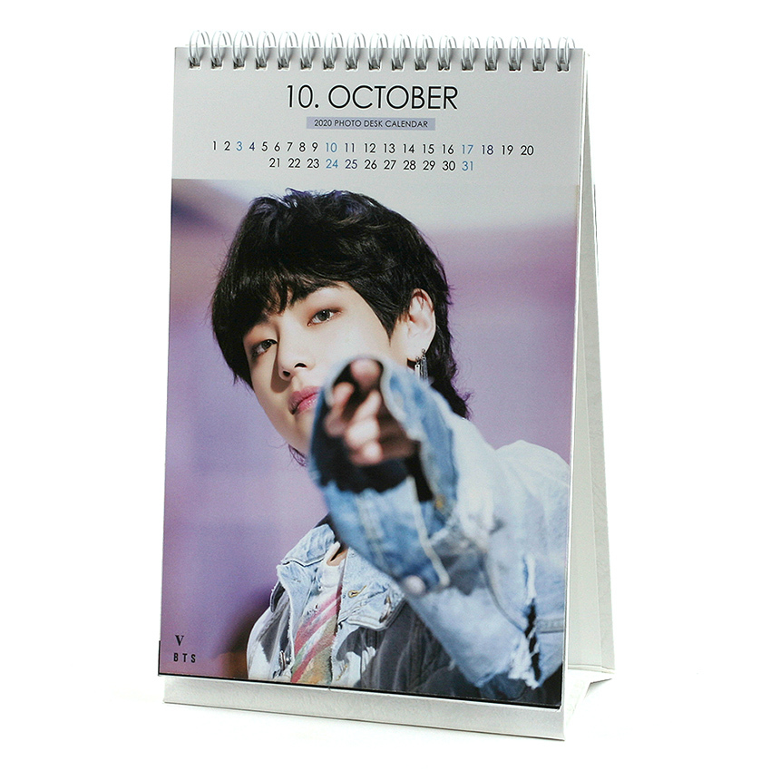 방탄소년단 뷔 V의 사진이 인쇄된 2019-2020년도 탁상 달력입니다.