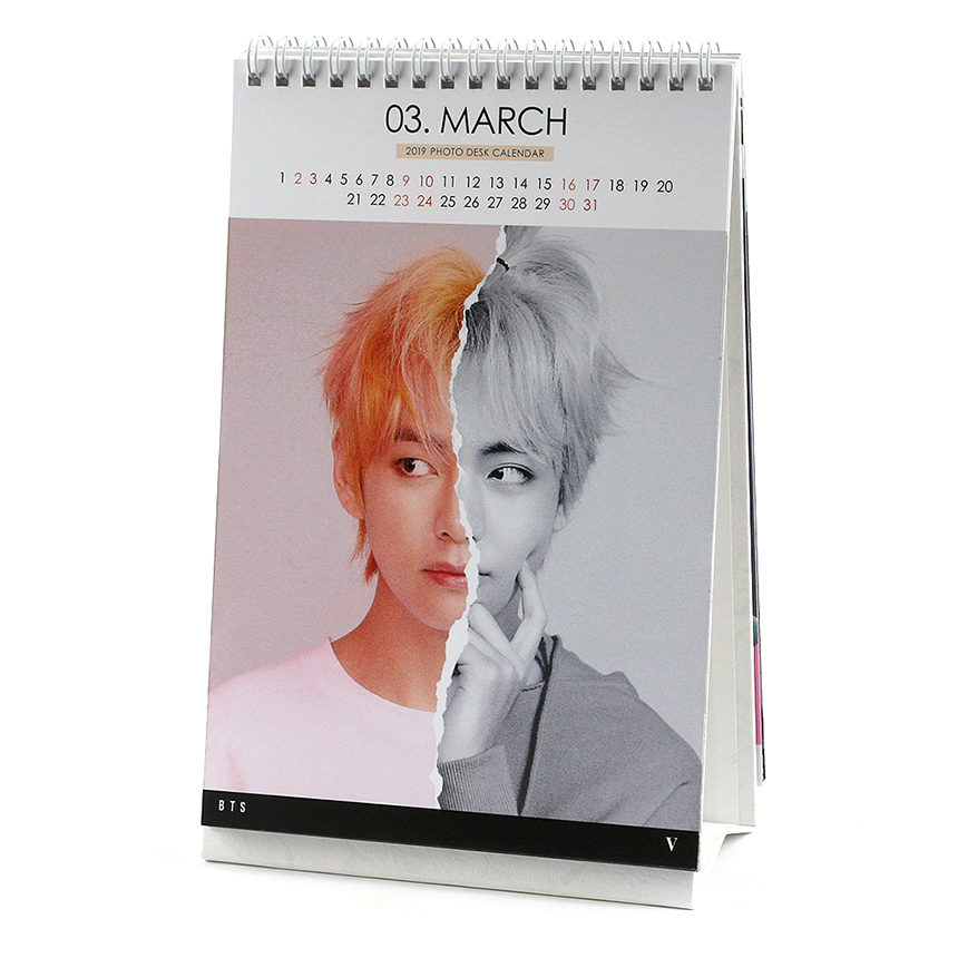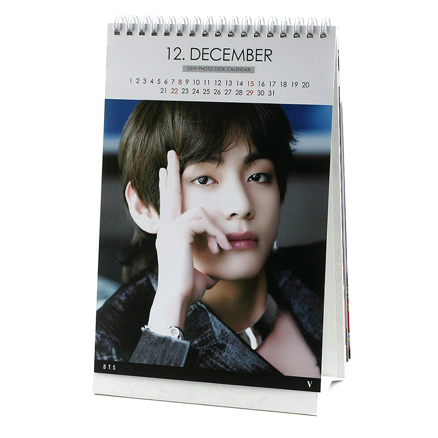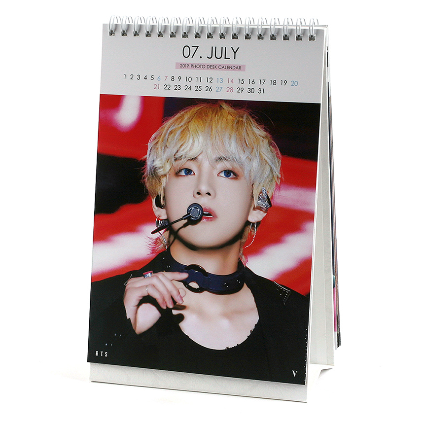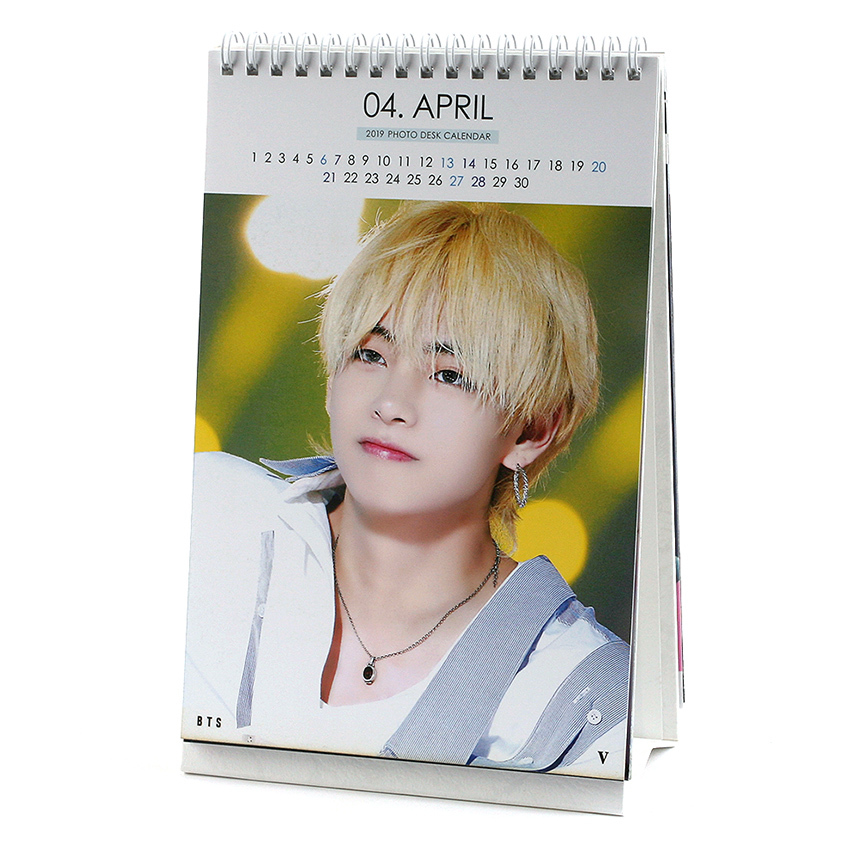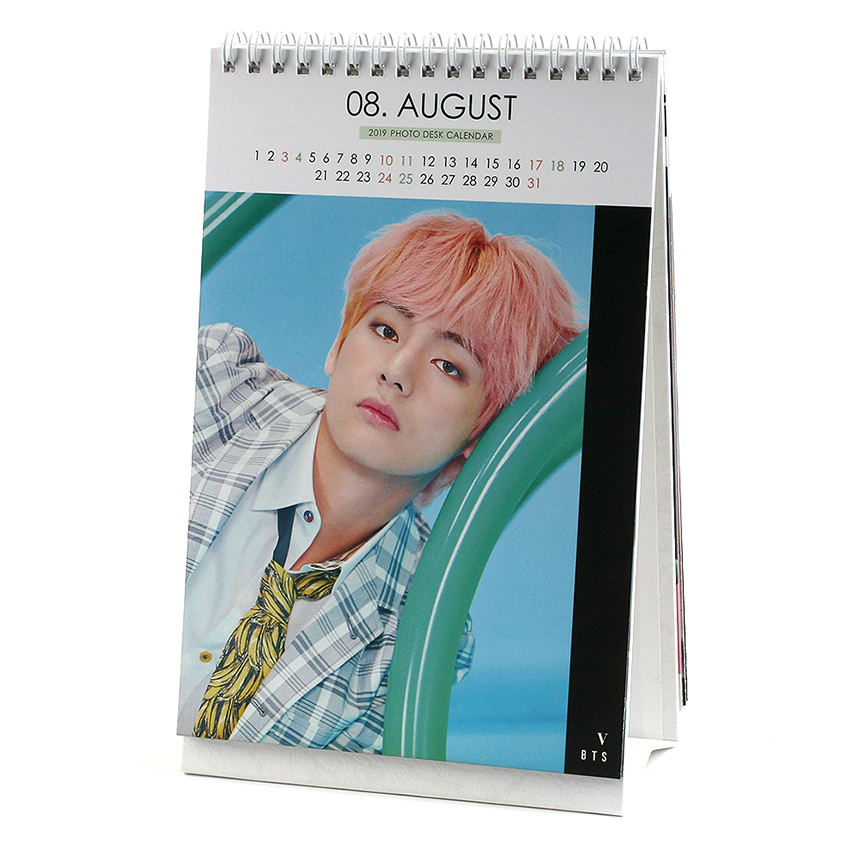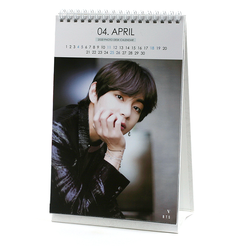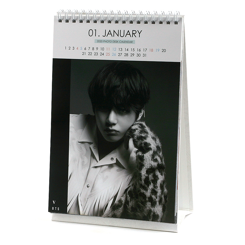 방탄소년단 뷔 V의 사진이 인쇄된 2019-2020년도 탁상 달력입니다.