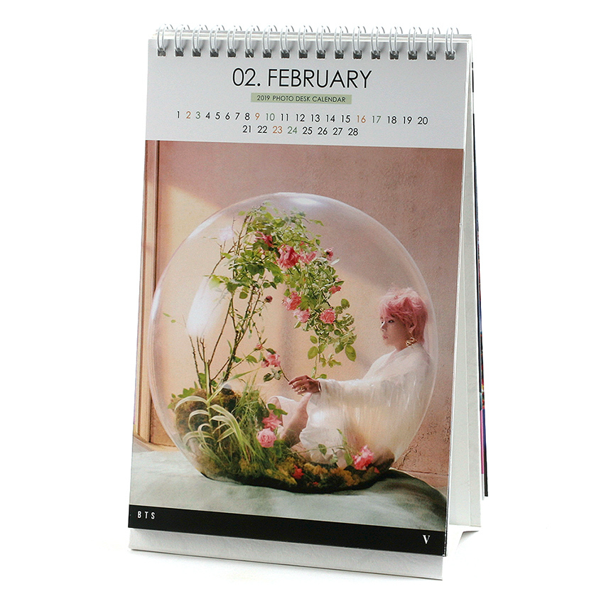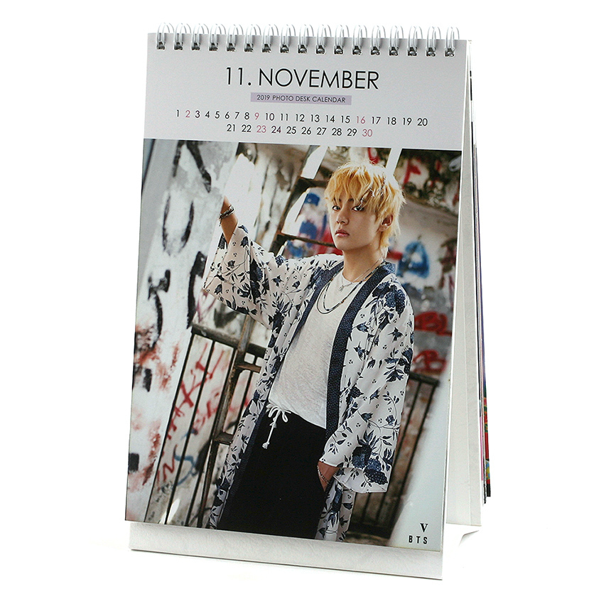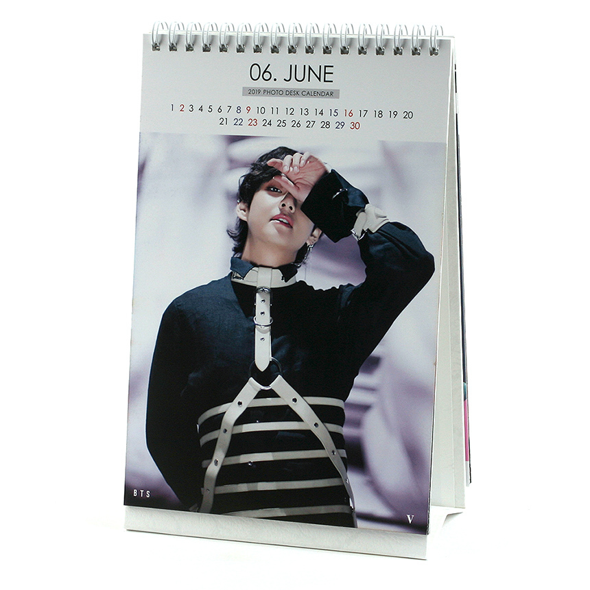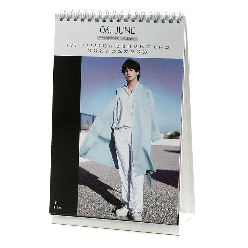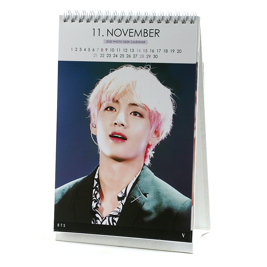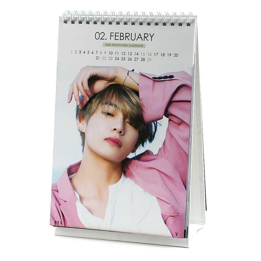 방탄소년단 뷔 V의 사진이 인쇄된 2019-2020년도 탁상 달력입니다.