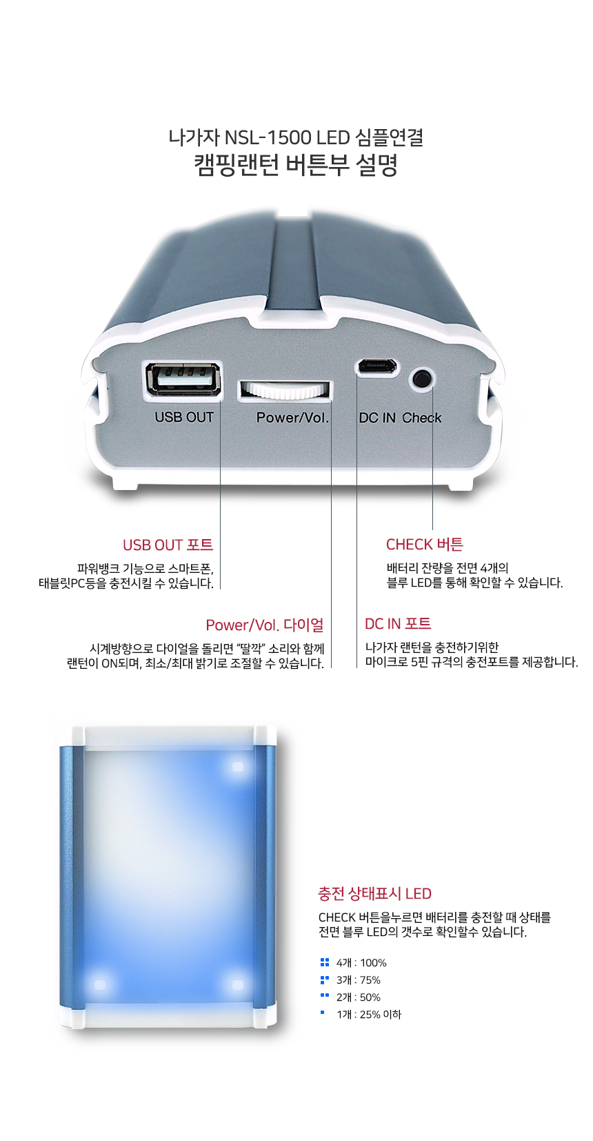 NSL-1500 심플연결형 캠핑랜턴 & 보조배터리