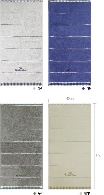 | 타월의 색상 | 회색 파랑 녹색 베이지 |