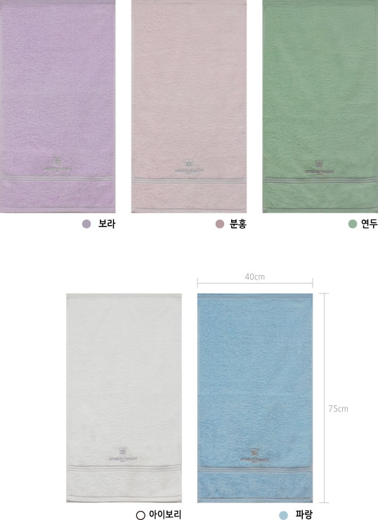 | 타월의 색상 | 보라 분홍 연두 아이보리 파랑 |