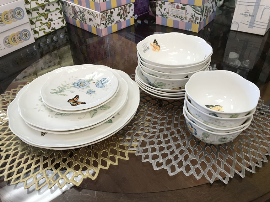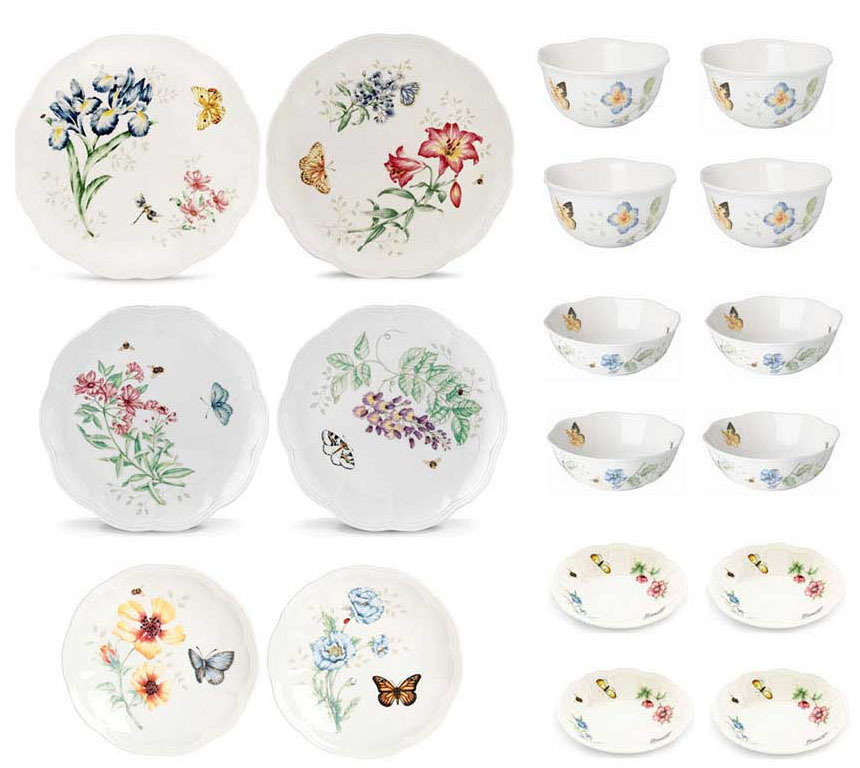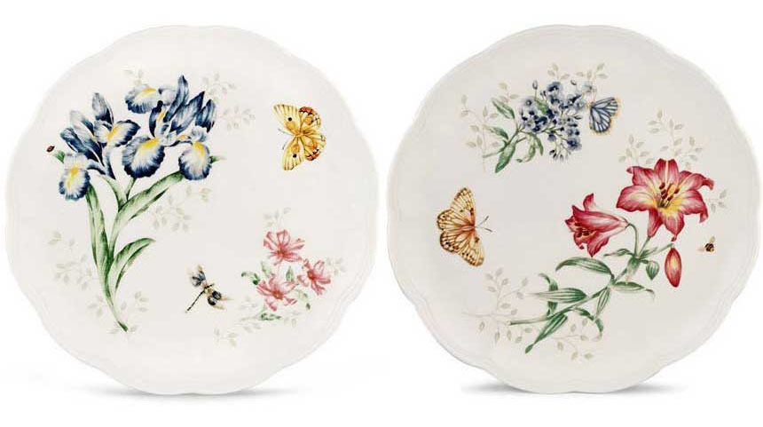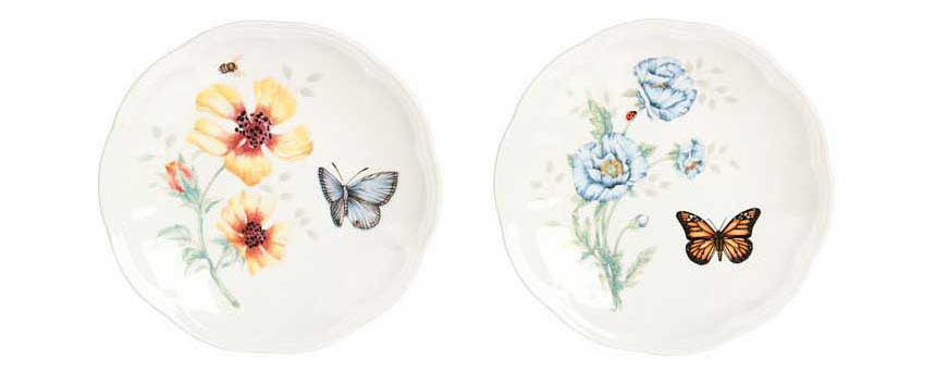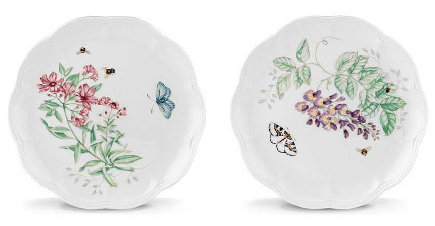 Mix match different plates with floral and butterfly Lenox patterns to create a unique customized dining experience. In dishwasher-safe bone china.