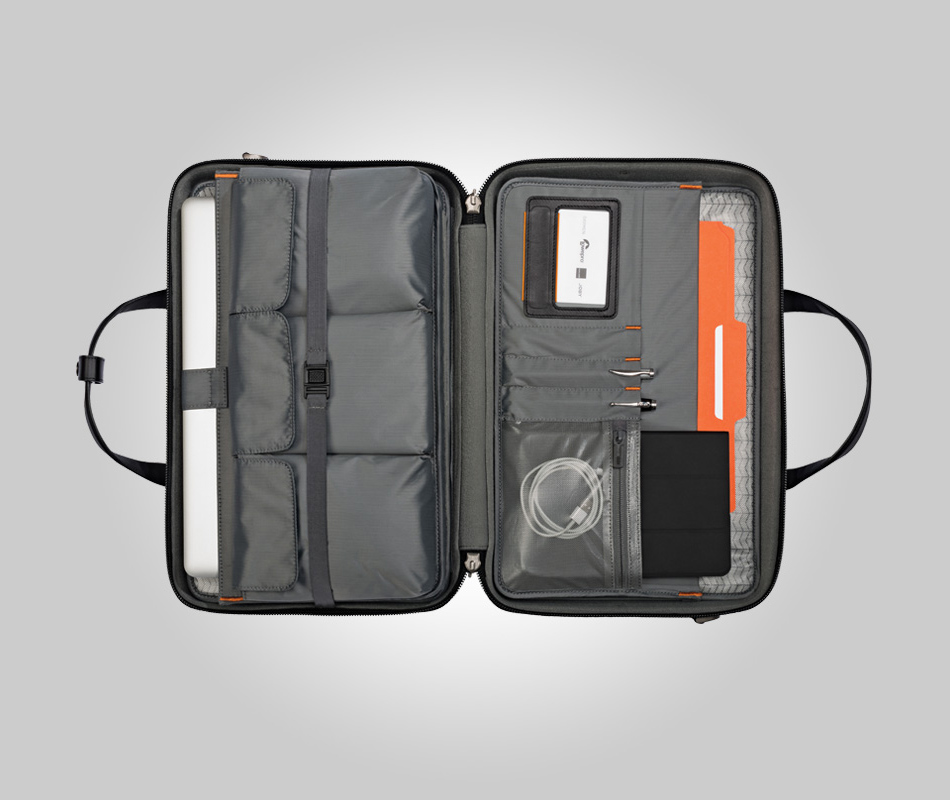 외장하드와 메모리카드 리더, 어댑터와 케이블, 기타 업무에 필요한 디바이스들을 안전하게 고정시킬 수 있는 착탈식 노트북PC 슬리브를 제공합니다.