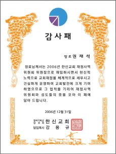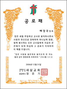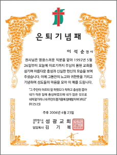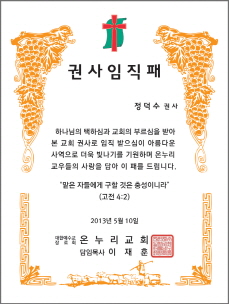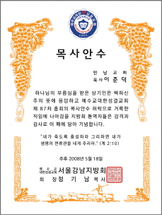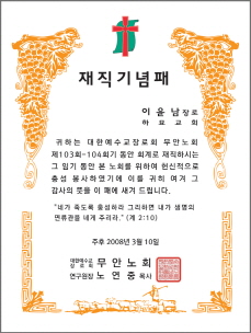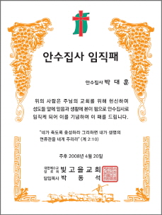 < 7 - 권사임직패 > < 8 - 명예권사패 > < 9 - 안수집사 임직패 >
