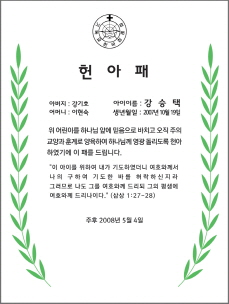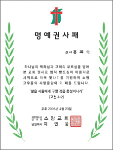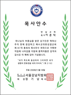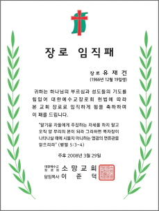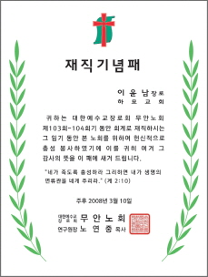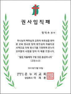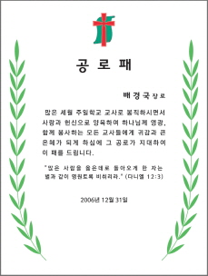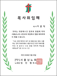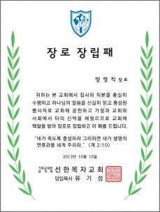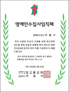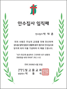 | < 7 - 권사임직패 > | < 8 - 명예권사패 > | < 9 - 안수집사 임직패 > |