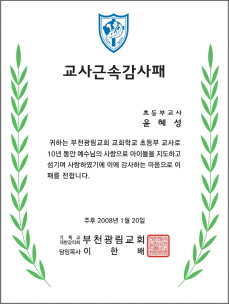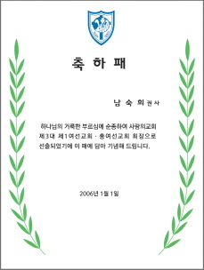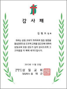 | < 10 - 명예안수집사 임직패 > | < 11 - 교사근속 감사패 > | < 12 - 감사패 > |