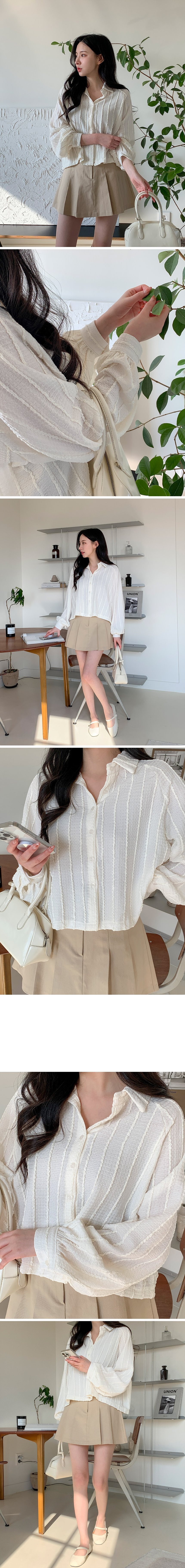 [ 레이스 주얼리 퍼프 크롭 블라우스 ]