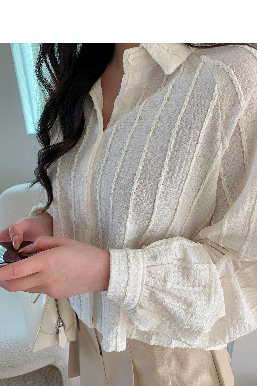 페미닌한 레이스와 퍼프 디테일이 있는 블라우스에