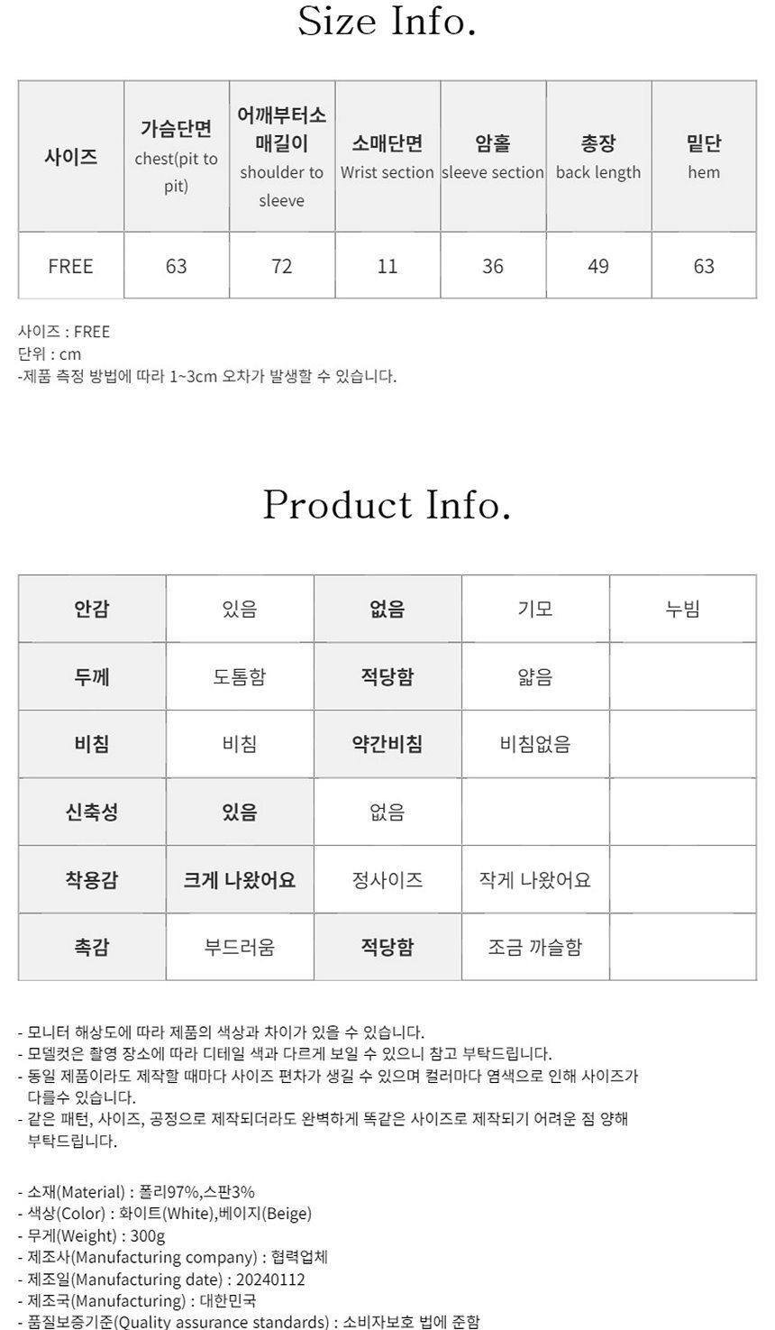 ☆ 모델 착용 사이즈 : FREE/베이지 착용/JY