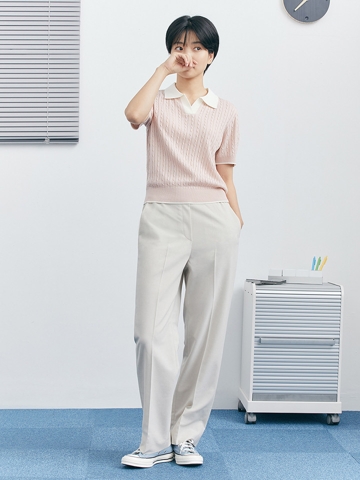 여성) 쿨링 세미와이드핏 백밴딩 슬랙스