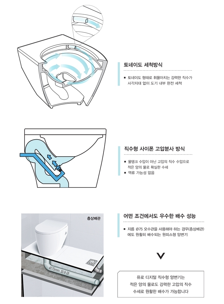 변좌 상부에서는 사이클론 방식으로 세정합니다.