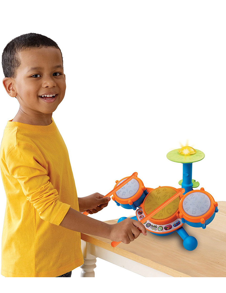 - Kids learning toy has three drum pads and cymbal each with its own unique sound for sensory development