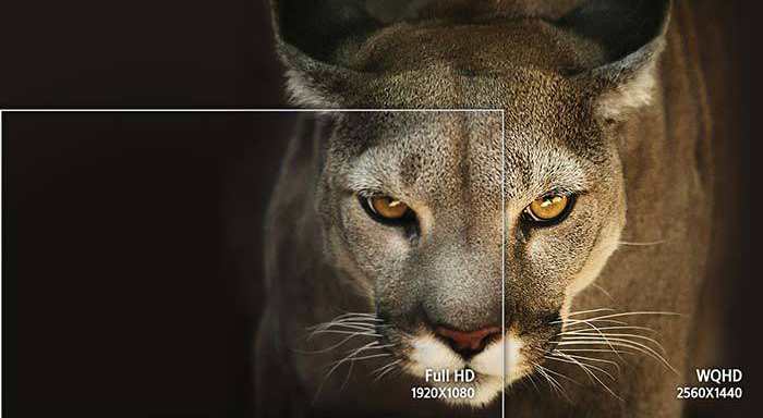 Full HD보다 높은 섬세한 밀도, 최대 1.7 배에 달하는 WQHD는 2560 x 1440