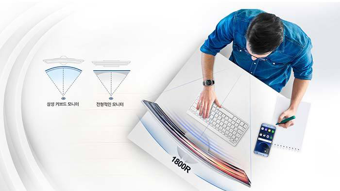 최적의 화면 곡률 1800R은 눈으로 보는 화면의 중심과 가장자리의 거리 차이를