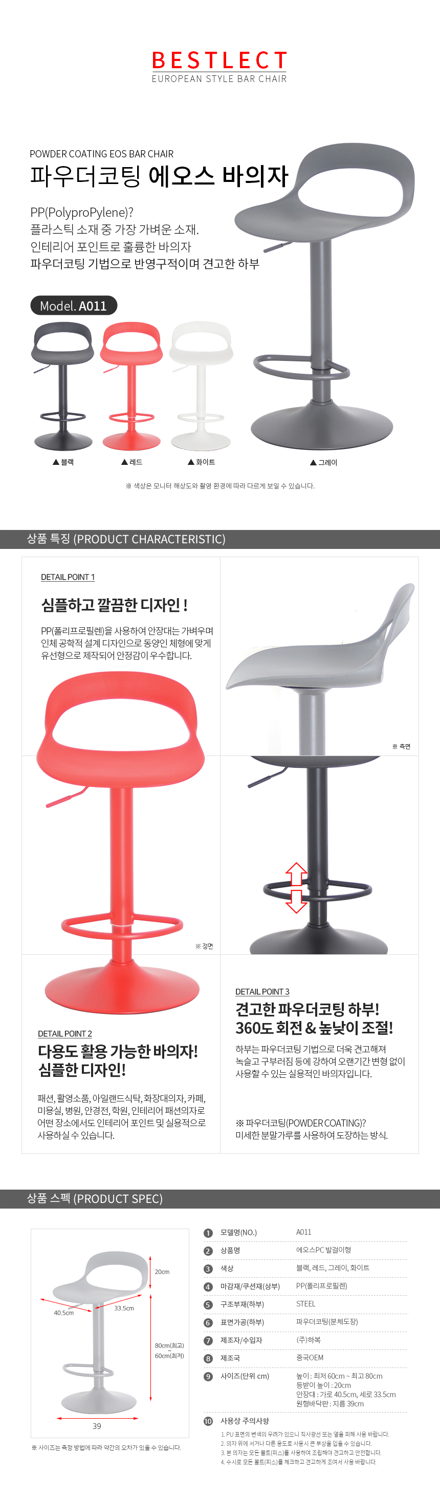A011 에오스 파우더코팅 발걸이형 홈바의자