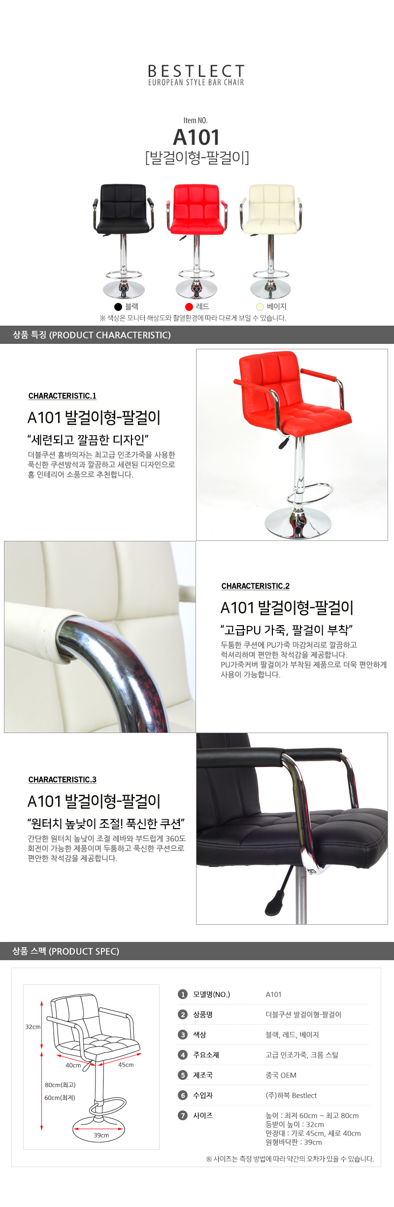 A101 더블쿠션 팔걸이 발걸이형 홈바의자