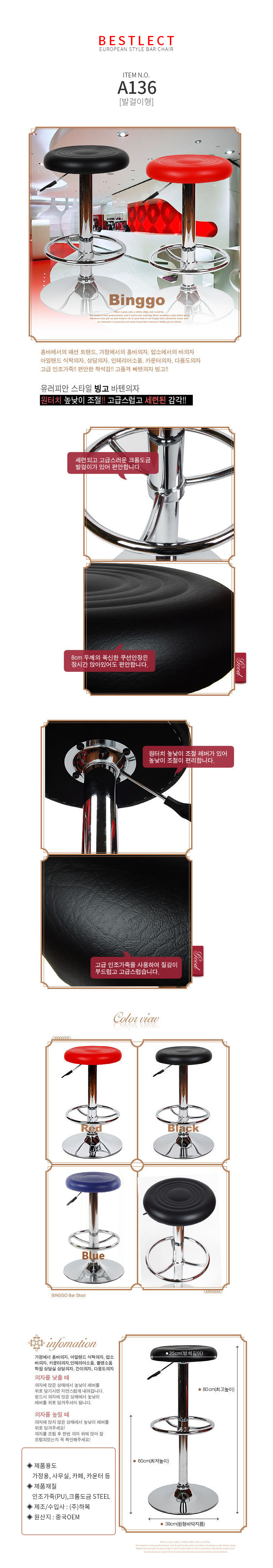 A136 빙고 발걸이형 홈바의자