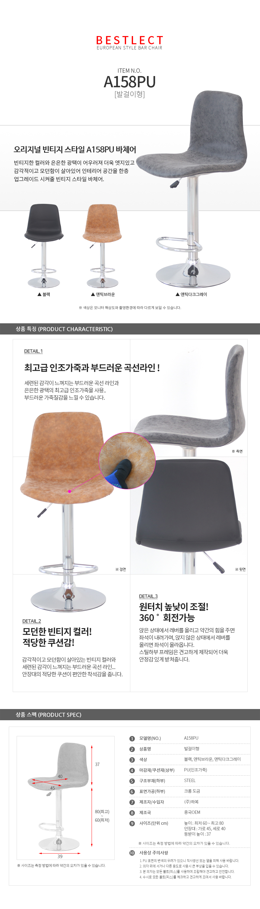 A158PU 빈티지 발걸이형 홈바의자